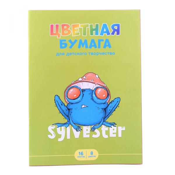 Бумага цветная А4 16л. 8цв. Альфа-Тренд 130022 "Сильвестр-3" газетная бумага