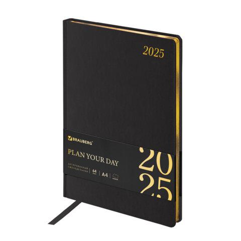 Еженедельник 2025г. BRAUBERG 115947 "Iguana" А4, под кожу, черный