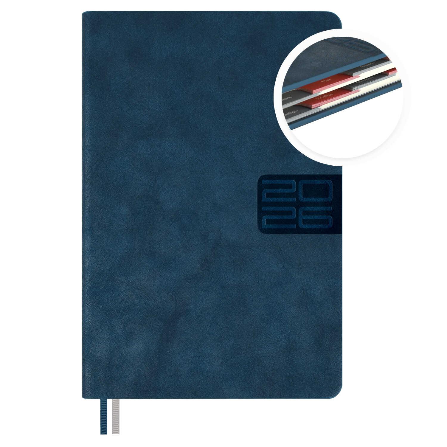 Ежедневник 2026г. Феникс 70247 А5, 176 л., иск.кожа "Наппа", синий