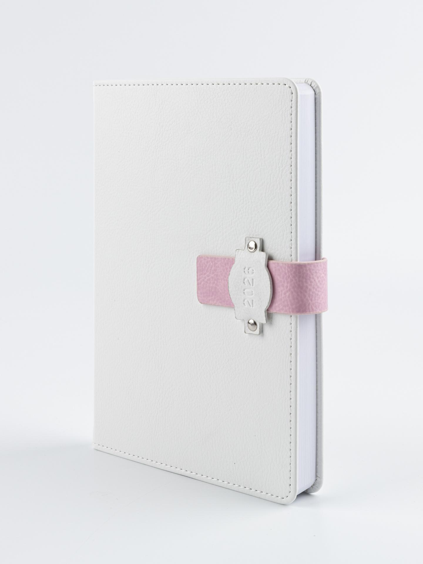 Ежедневник А5 2026г. Альфа-Тренд 310160 "Болонья" белый+розовый хлястик, тв. переплет