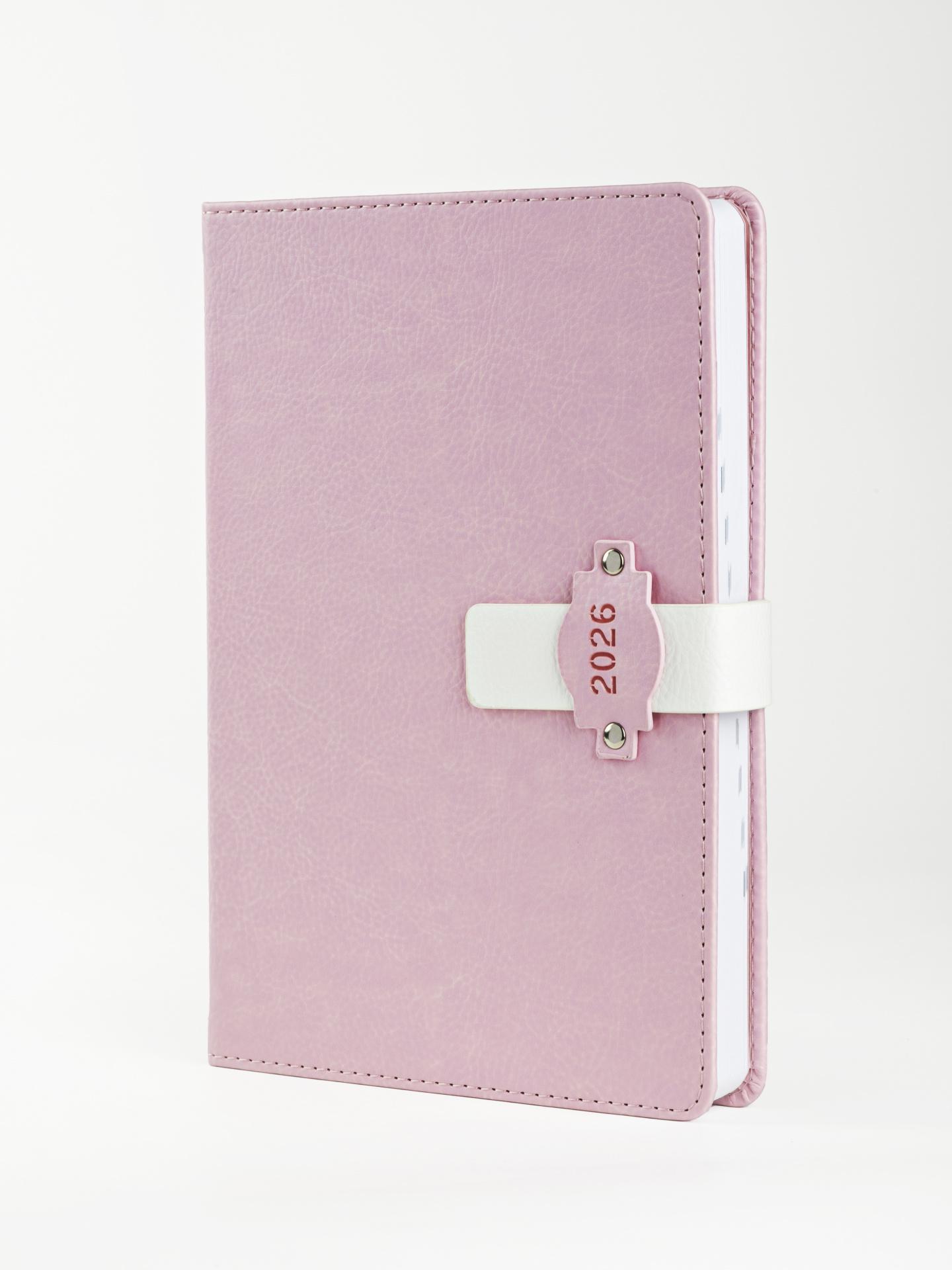 Ежедневник А5 2026г. Альфа-Тренд 310161 "Болонья" розовый+белый хлястик, тв. переплет
