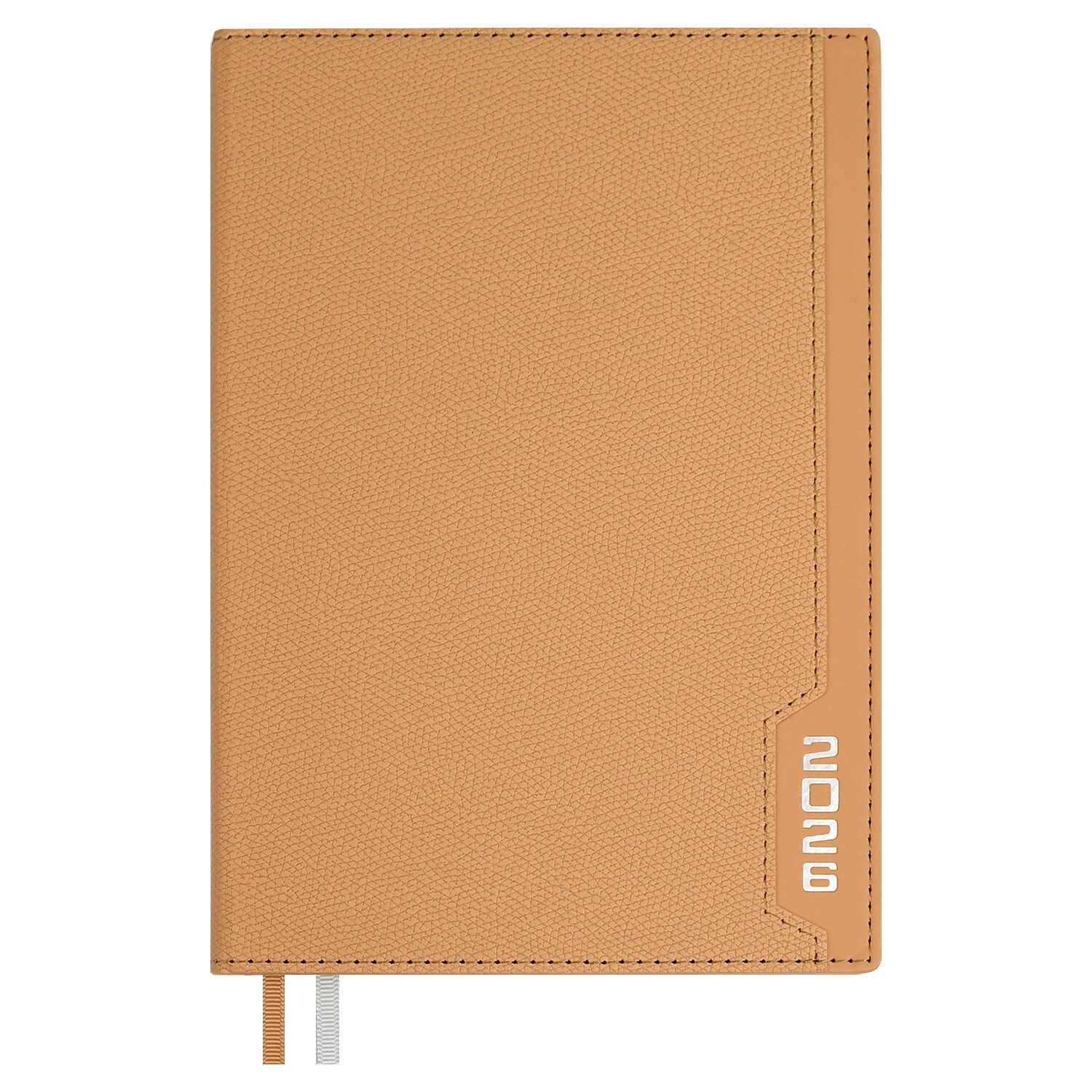 Ежедневник А5 2026г. Феникс 70238 ДЖУТ бежевый, кожзам, 176л., ляссе