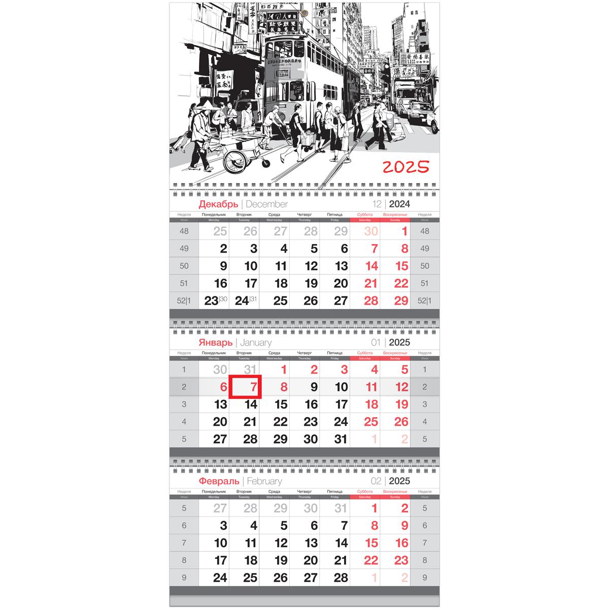 Календарь настенный на 2025г. БиДжи 369740 "Город" квартальный, 3 бл. на 3 гр. с бегунком