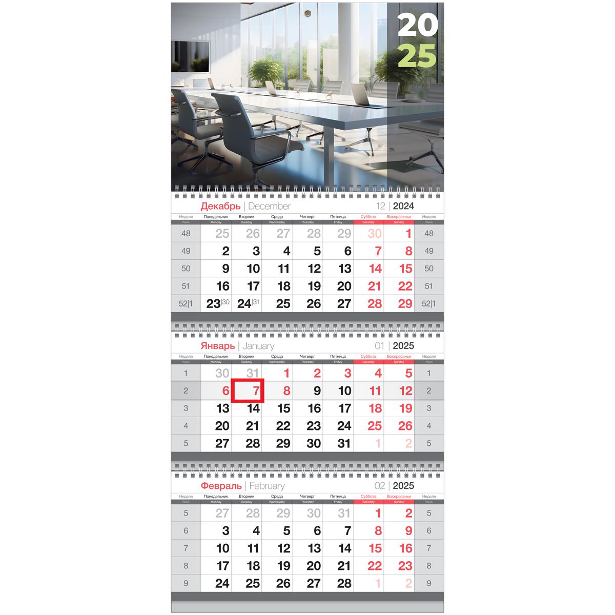 Календарь настенный на 2025г. БиДжи 369743 "Офис" квартальный, 3 бл. на 3 гр. с бегунком