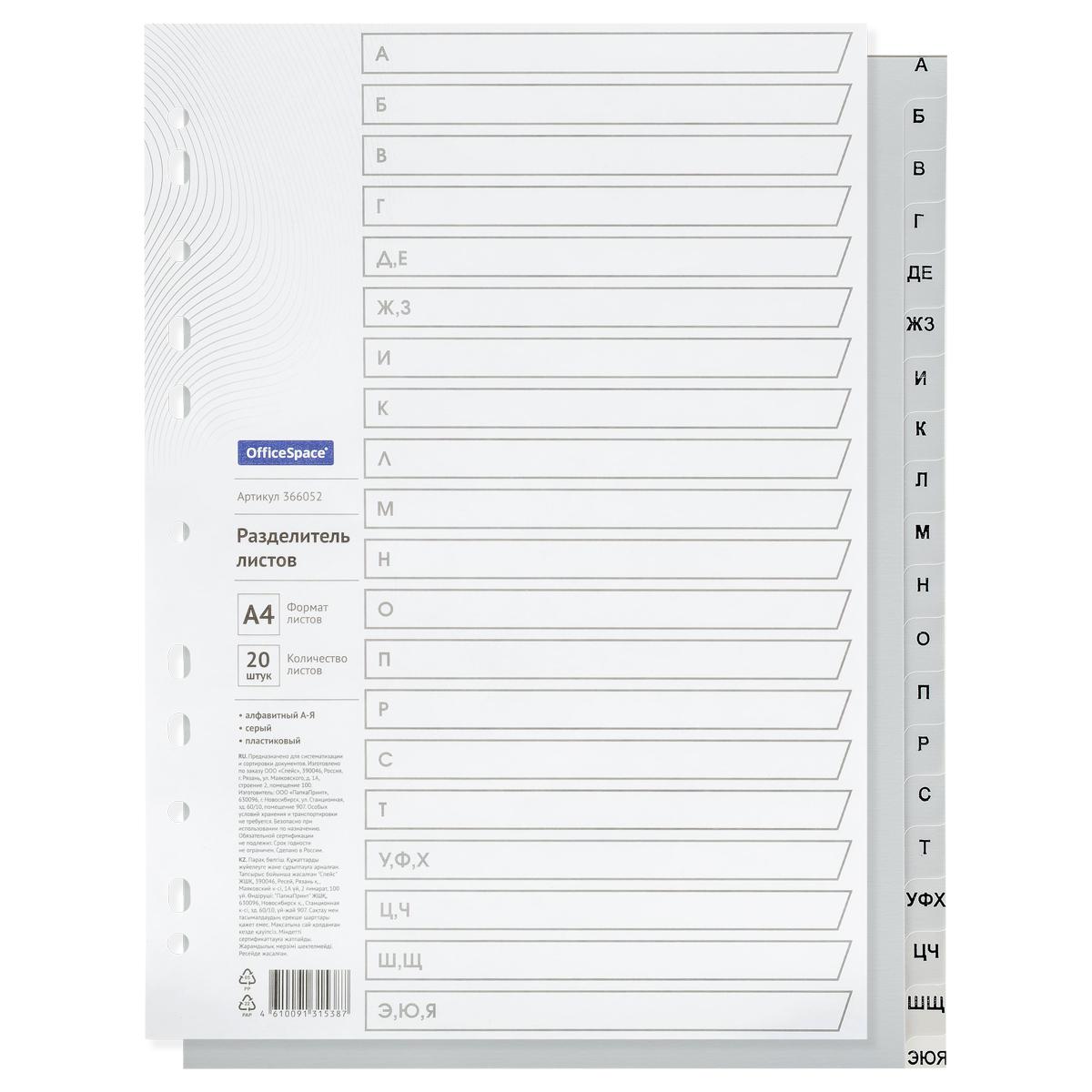 Разделитель А-Я А4 OfficeSpace 366052 пластиковый, серый