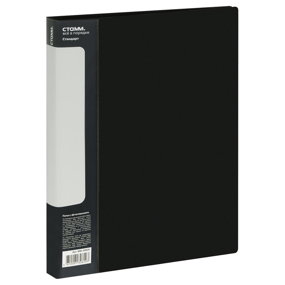 Папка 60 вкладышей СТАММ ММ-30629 "Стандарт" А4, 21мм, 700мкм, черная 355315