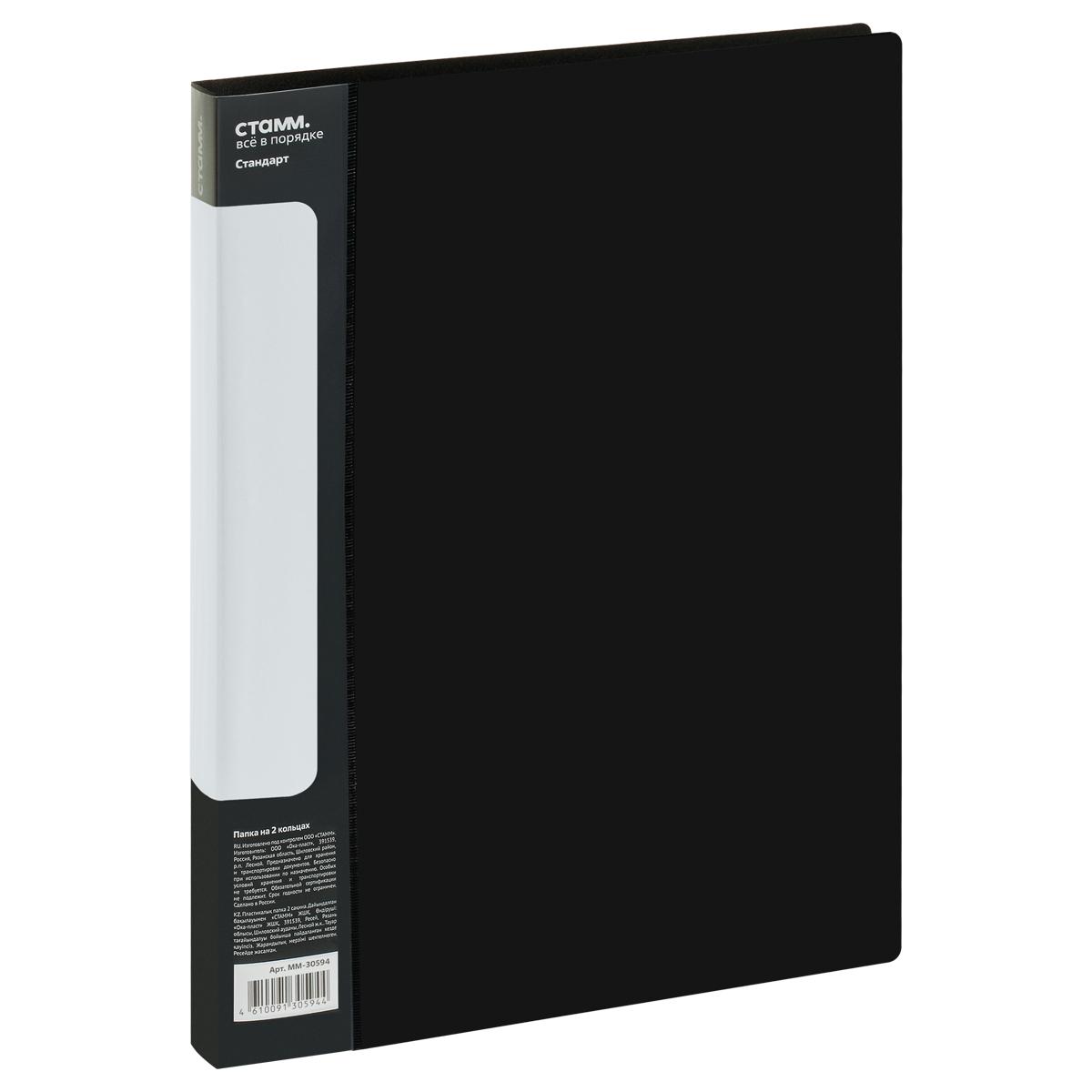 Папка 2 кольца 25мм А4 СТАММ "Стандарт" 700мкм, пластик, черная 355280