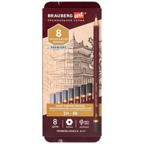 Карандаши ч/г 8шт Brauberg 181894 "Premiere" /2H-8B/ в пенале