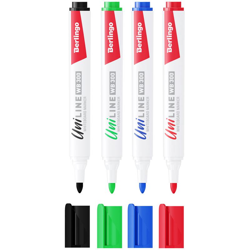 Маркеры 4цв. для доски Berlingo BMc_30509 "Uniline WB300" 3мм, пулевидный 319376