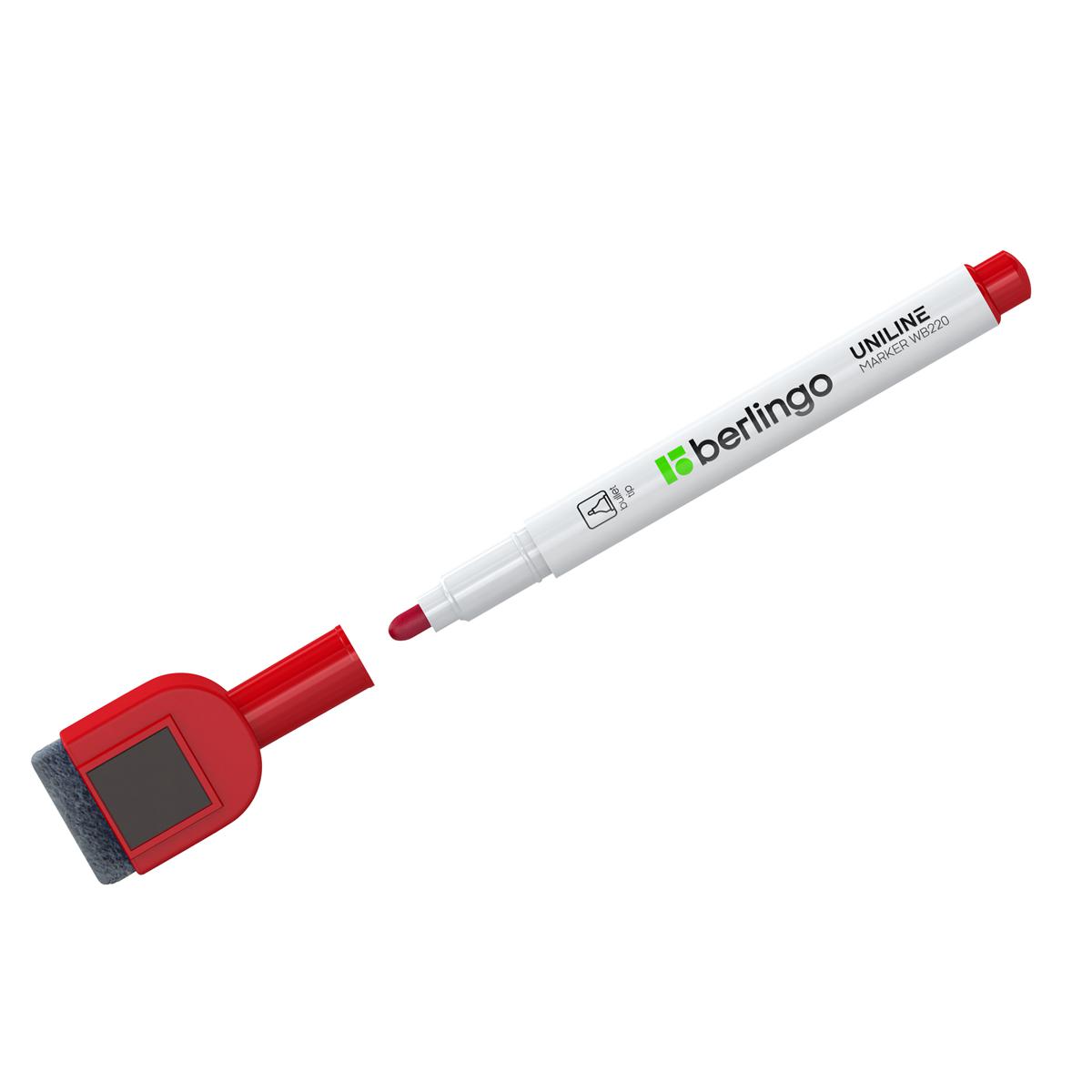 Маркер для доски 2,0мм Berlingo PM7212 "Uniline WB220" красный, пулевидный, 2мм с магнитом и губкой