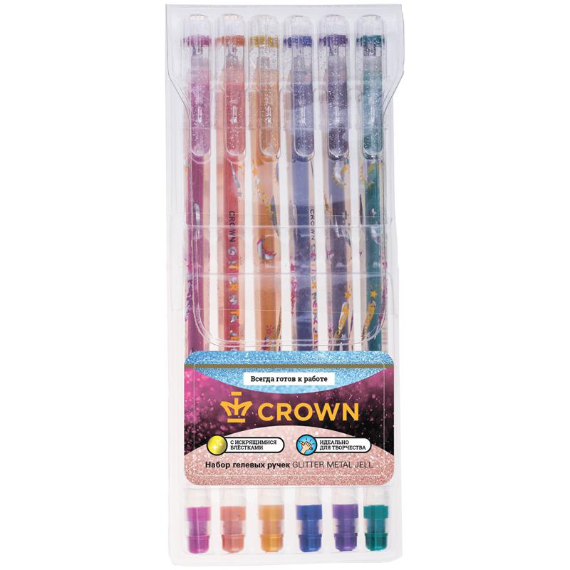 Ручки гелевые 6цв. Crown MTJ-500GL/6 "Glitter Metal Jell" 1,0мм, с блестками 094060