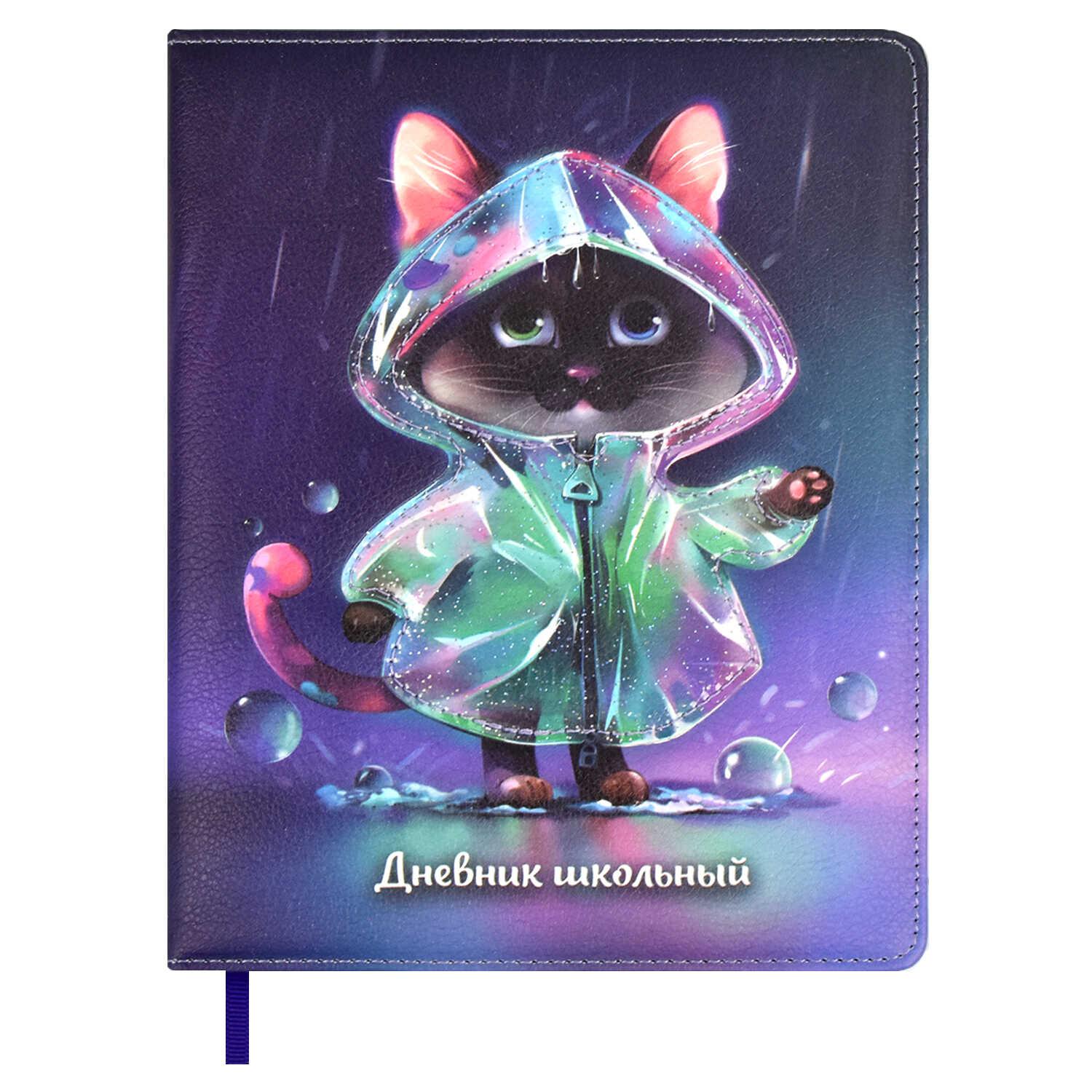Дневник Феникс 66383 "Котик в дождевике" твёрдый переплёт с аппликацией