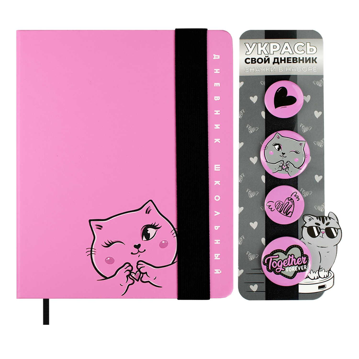 Дневник Феникс 68782 "Кошечка" тв. переплет, иск. кожа, значки