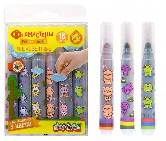 Фломастеры 18цв. ФТГРКМ06 "Каляка-Маляка" трехцветные, утолщенные, трехгран.корпус 240040