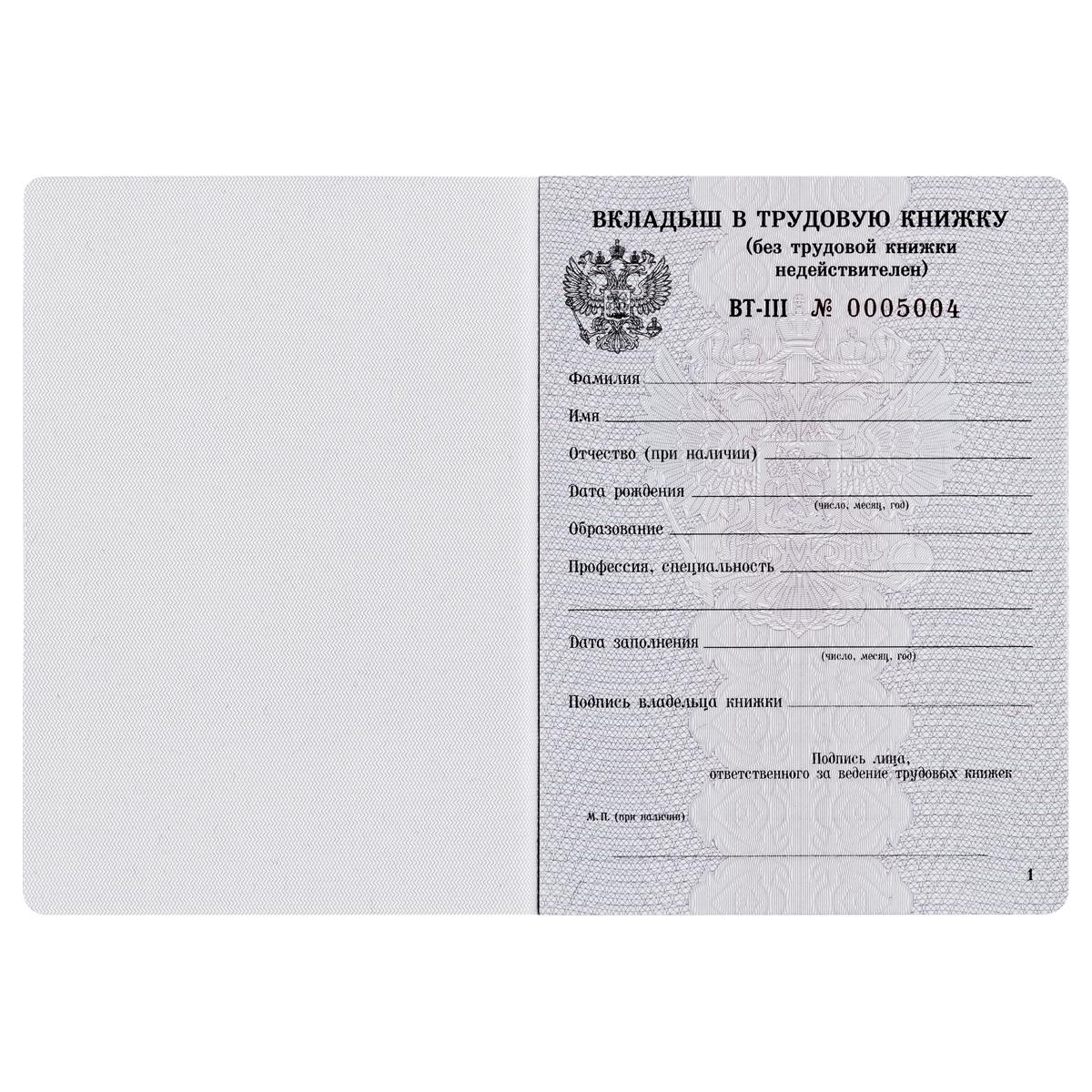 Бланк "Вкладыш для трудовой книжки" 348769