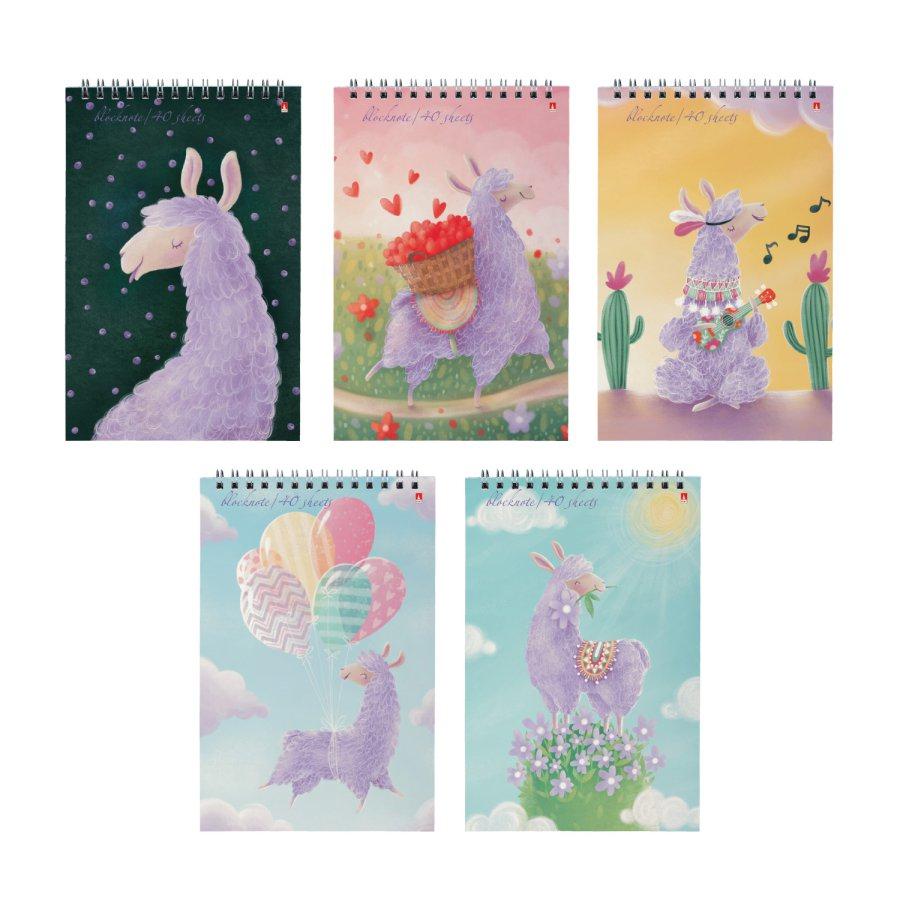 Блокнот А5 BrunoVisconti 3-40-245 40л. "Лавандовые ламы" на гребне, клетка, ассорти