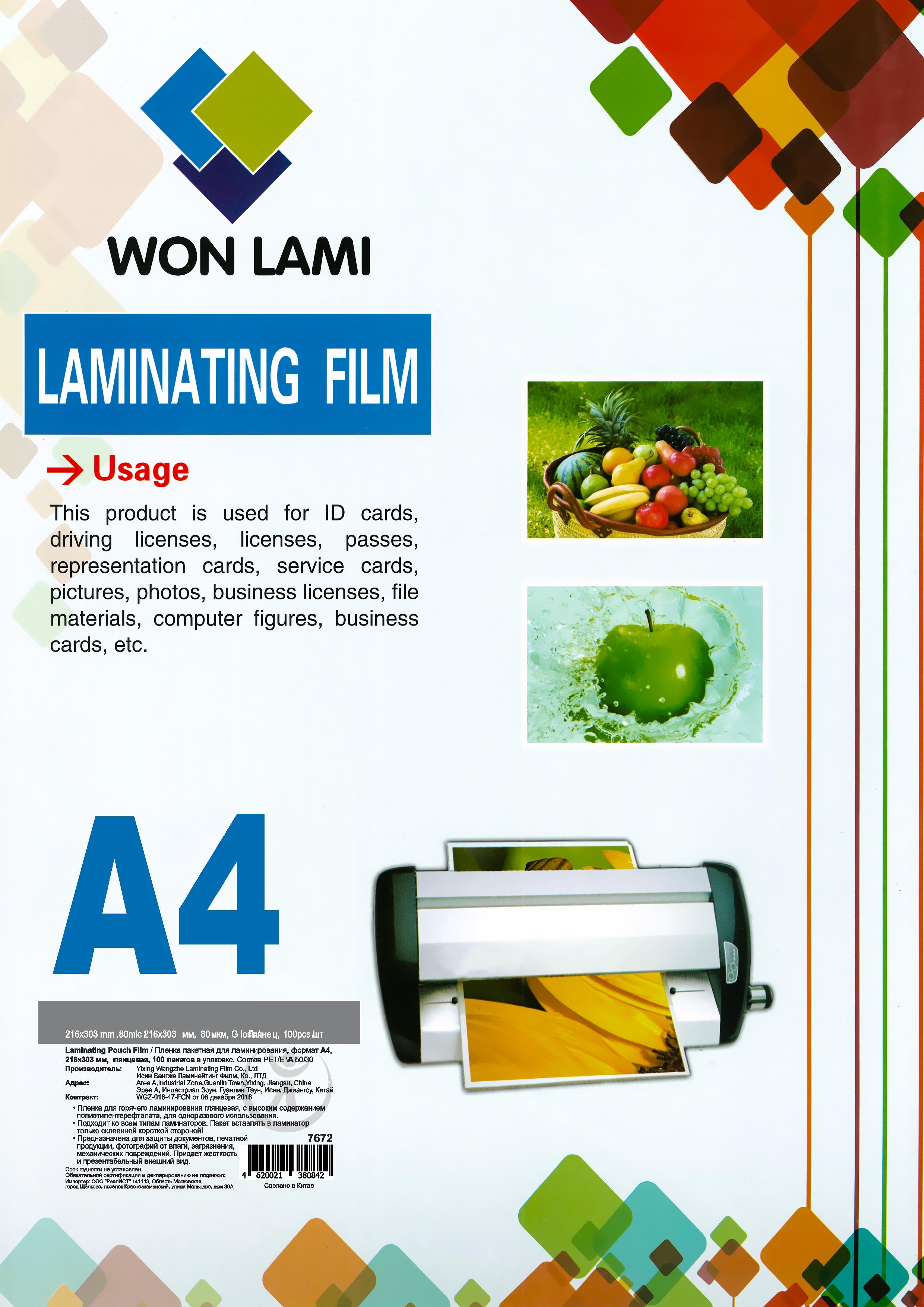 Пленка д/ламинирования А4 216*303мм 80мкм /7672/(100шт) WF