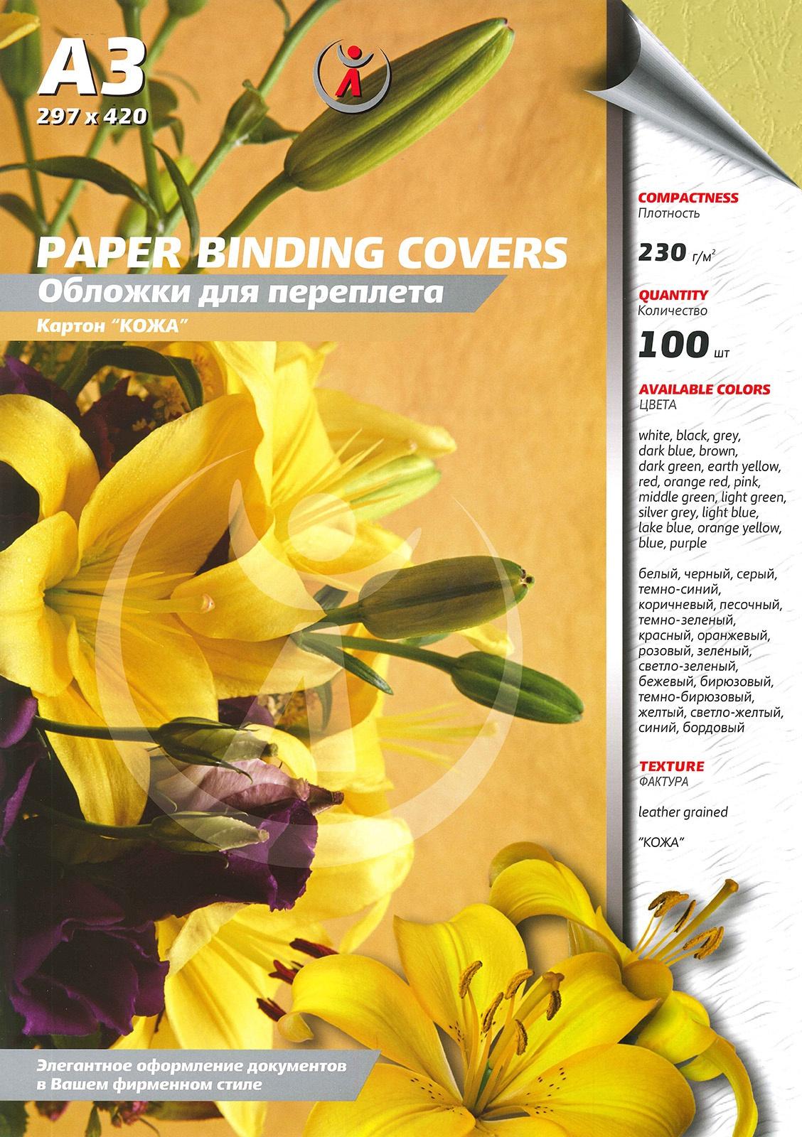 Обложки А3 230г/м2 кожа светло-желтые /100шт/
