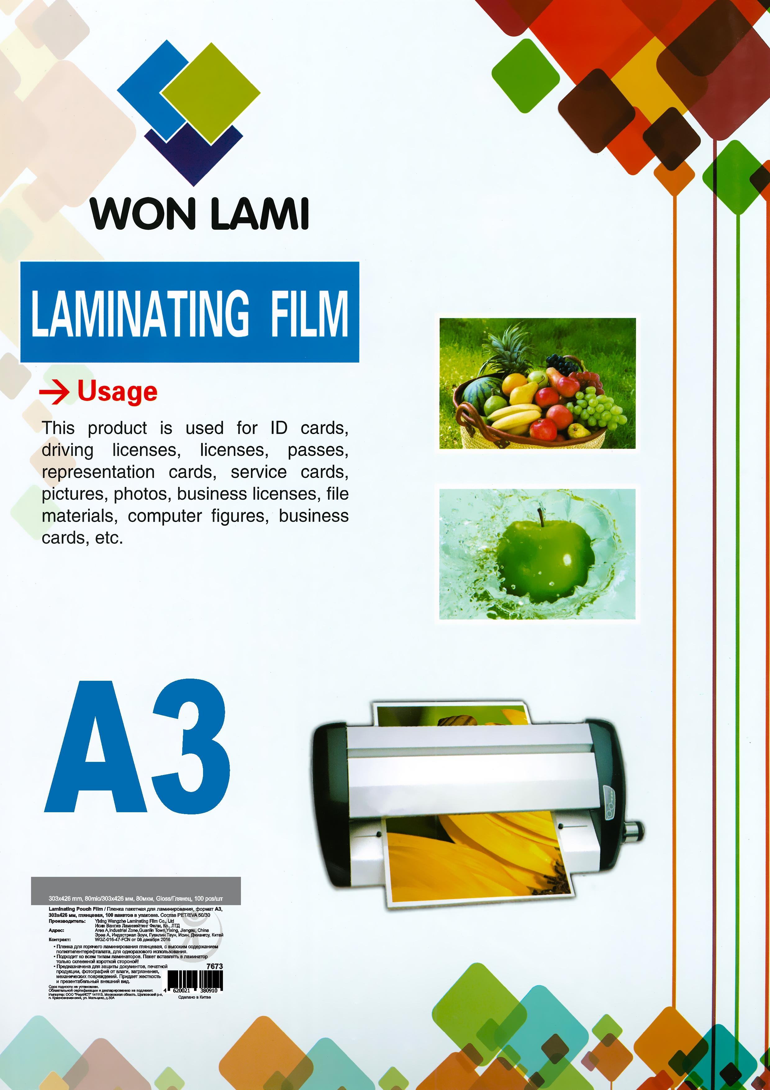 Пленка д/ламинирования А3 303*426мм 80мкм /100шт/ 7673