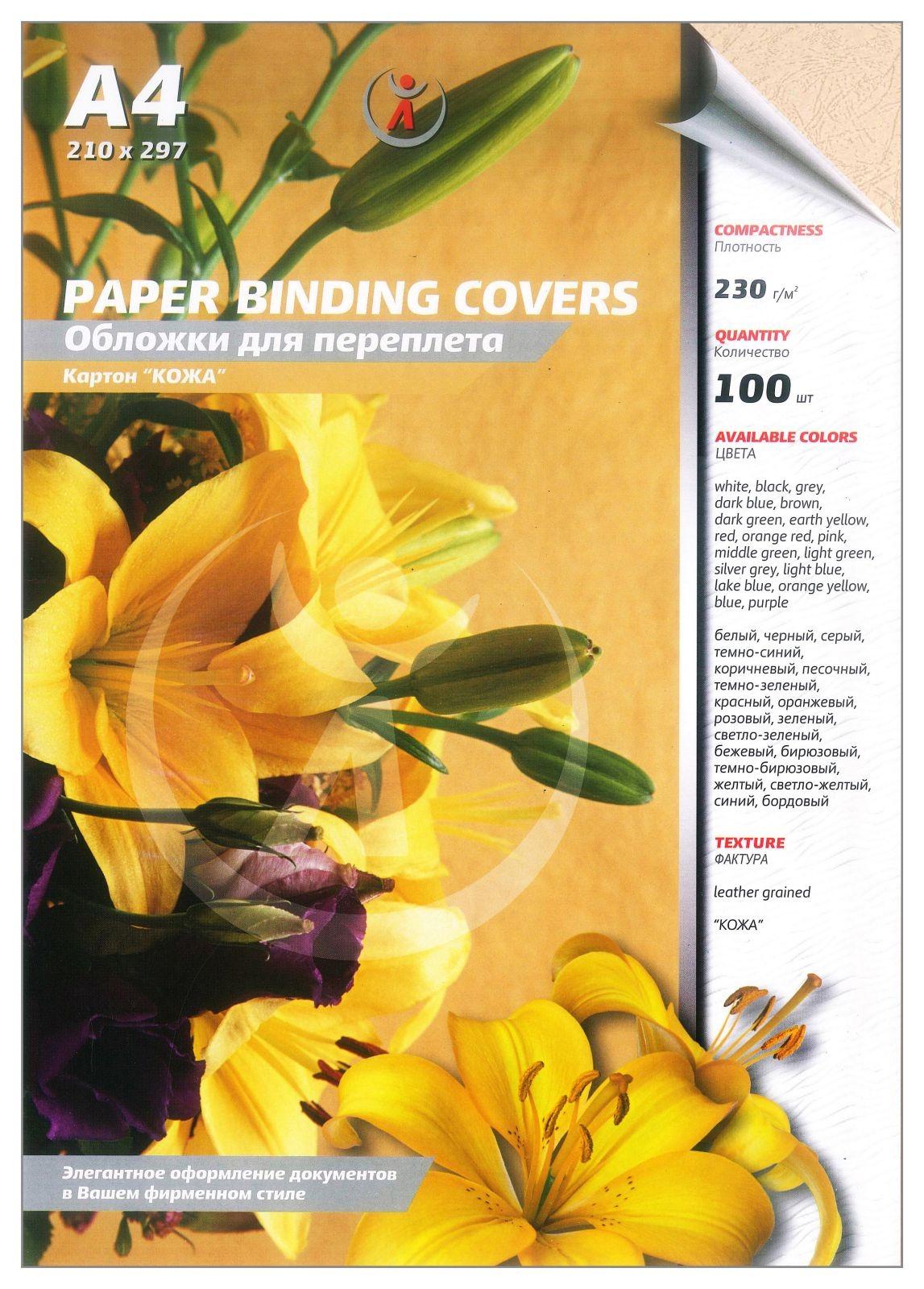 Обложки А4 230г/м2 кожа бежевые (100шт)