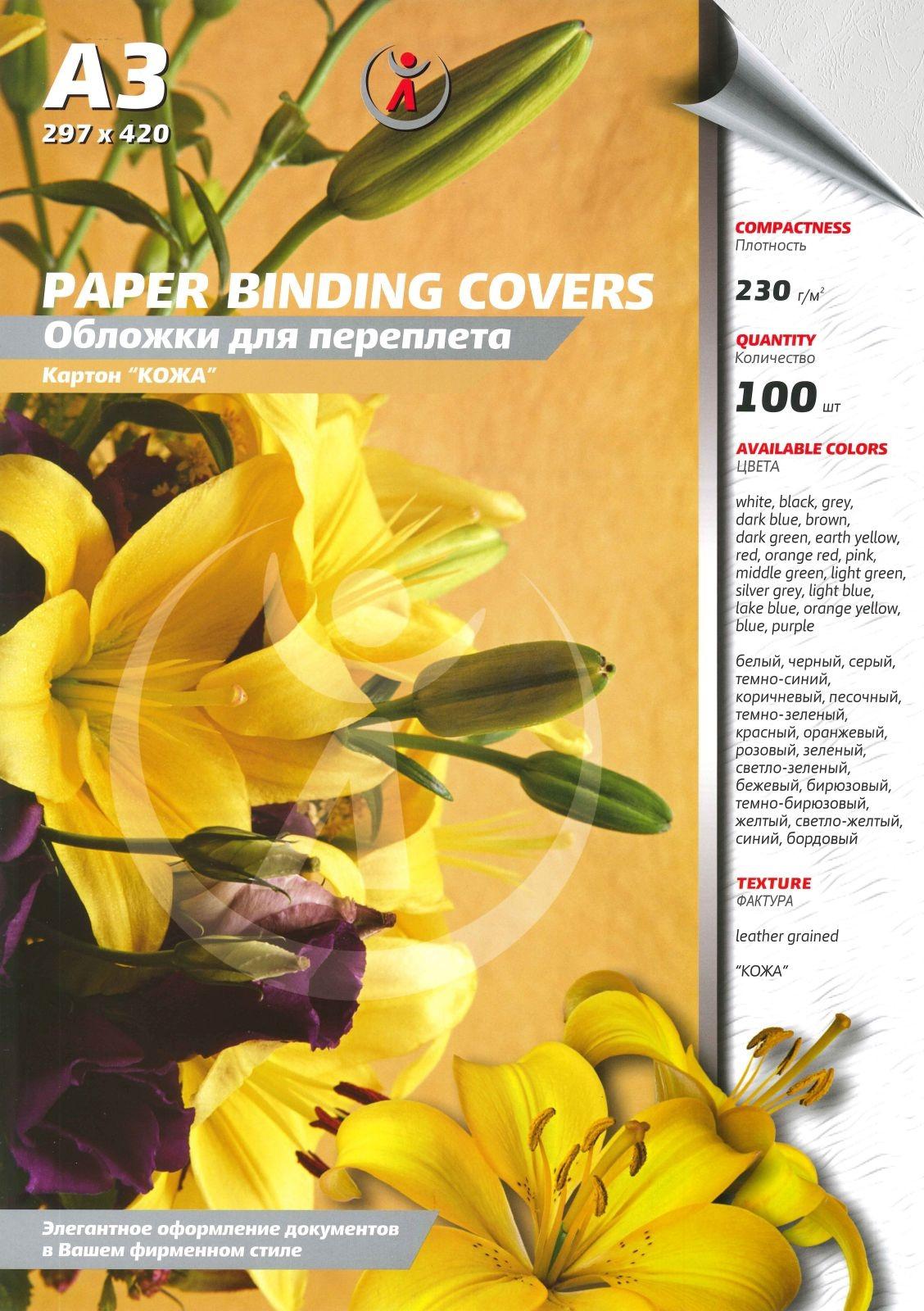 Обложки А3 230г/м2 кожа белые /100шт/