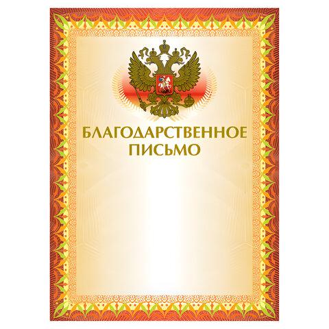 Грамота Brauberg 123060 "Благодарственное письмо" А4 тиснение фольгой, желтая
