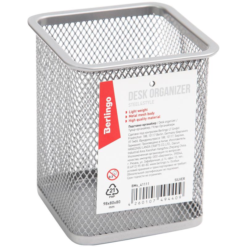 Подставка д/пишущих принадлежностей Berlingo BMs_41111 98*80*80мм. квадратн., металл, серебро 268949