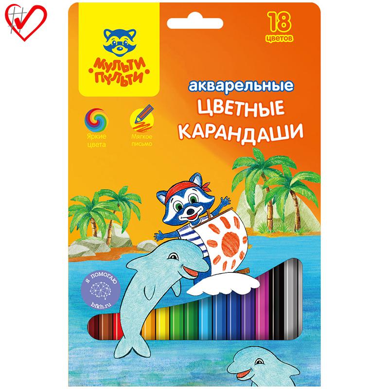 Карандаши 18цв. Мульти-Пульти CP_10764 "Енот в Карибском море" акварельные 239782