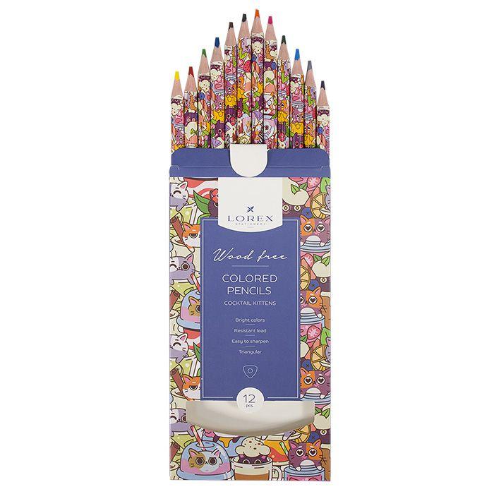 Карандаши 12цв. Lorex LXCPWF12-CK "Wood free coctail kittens" трехгран. 209733