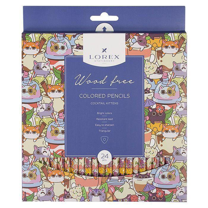 Карандаши 24цв. Lorex LXCPWF24-CK "Wood free coctail kittens" трехгран. 209735