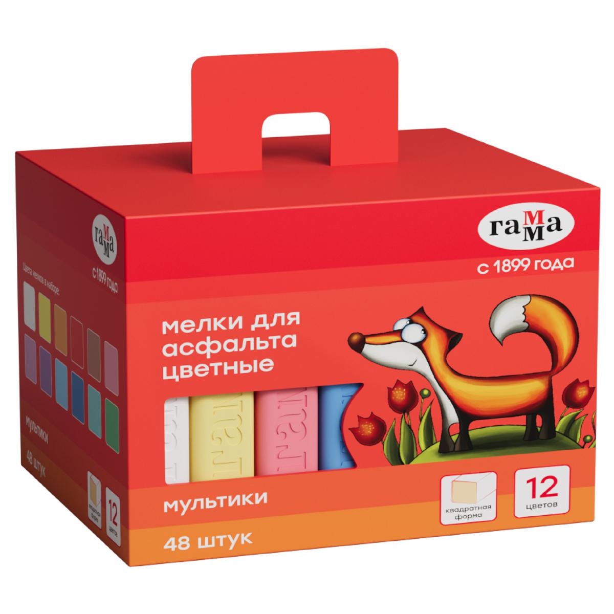 Мел 48шт. Гамма 9022348 "Мультики" 12цв., квадратный, цветной 358216