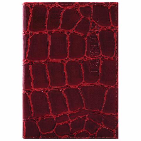 Обложка BRAUBERG 237180 "Passport" для паспорта, натур. кожа крокодил, красная
