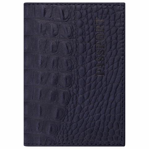 Обложка BRAUBERG 237196 "Passport" для паспорта, натур. кожа кайман, темно-синяя