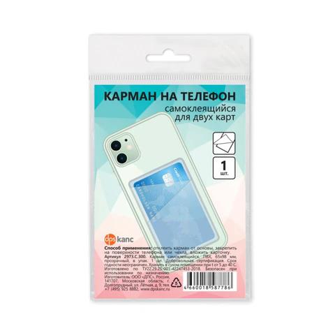 Карман 239047 для двух карт/картхолдер на телефон самоклеящийся прозрачный, 65х98мм /ДПС/